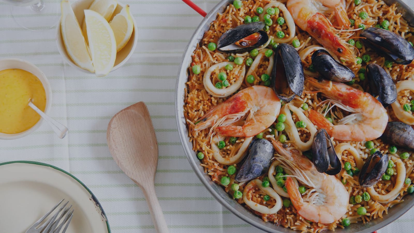 Pick 5 Tapas, either a Vegetable or Chicken & Chorizo Paella - optional seafood add-on available, and 1 Dessert.