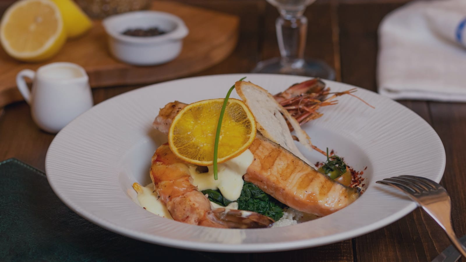 Indulge in an extraordinary surf and turf experience, where ocean and earth come together in perfect harmony. Savor a perfectly seared, prime cut of wagyu steak, its rich, buttery flavor complemented by succulent lobster tails, delicately butter-poached to tender perfection. Paired with indulgent sides like truffle mashed potatoes, roasted seasonal vegetables, and a luscious garlic-herb butter, each bite is an unforgettable blend of luxurious textures and flavors.