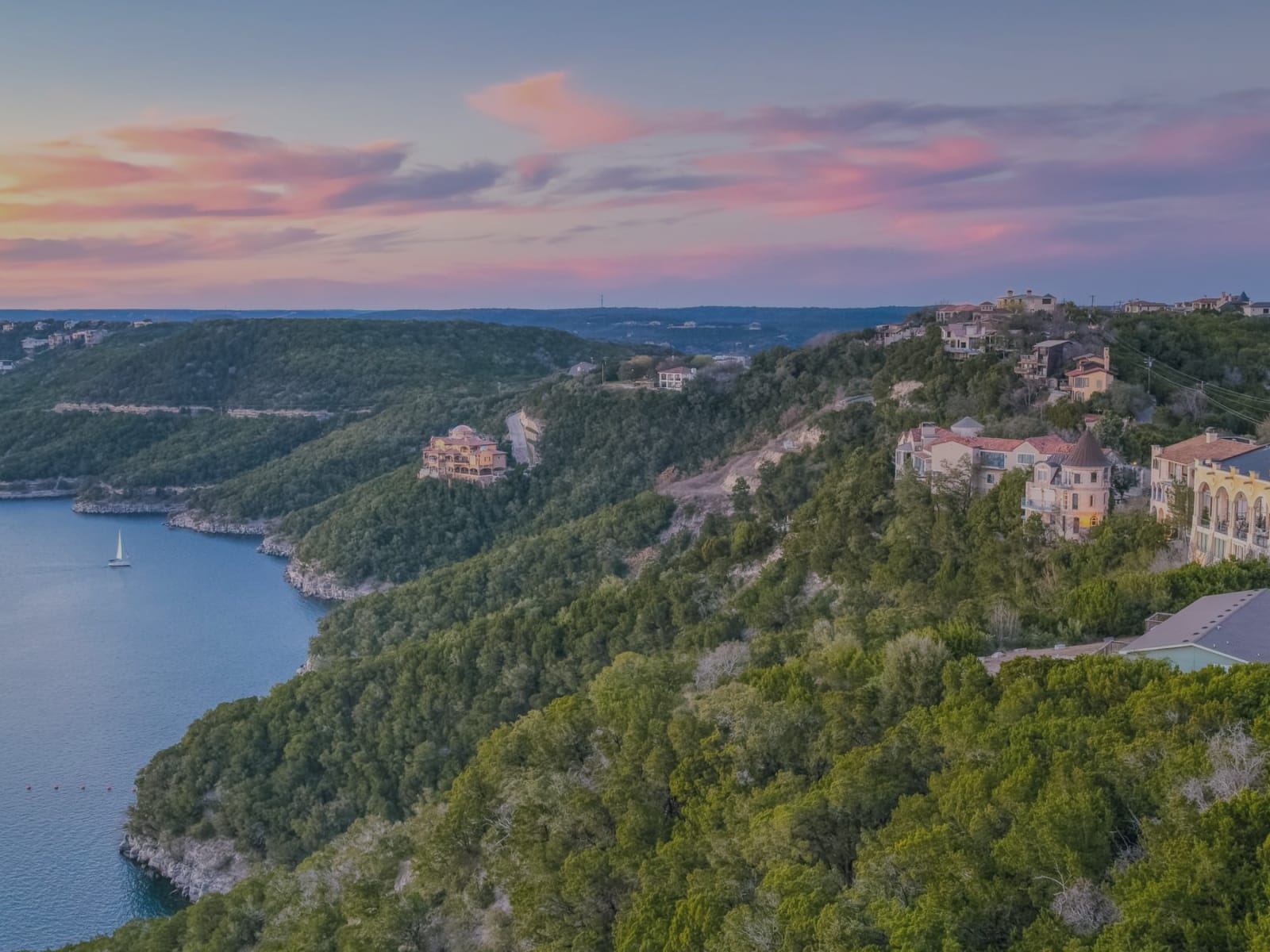 Pristine blue waters stretching across 65 miles of the Colorado River just northwest of Austin — Lake Travis is an easy getaway with plenty of luxury waterfront accommodations, recreational opportunities, and stunning panoramic views of the Texas Hill Country landscape.