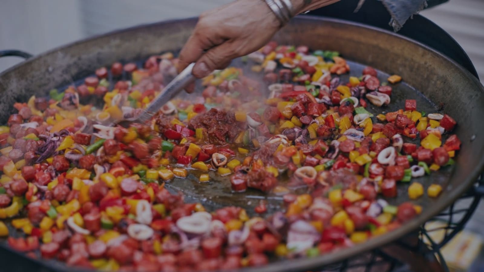 Paella is perfect for outdoor celebrations because it's inherently communal — traditionally cooked in one large pan and served directly from it, allowing people to gather around and share. The outdoor cooking process also becomes part of the social experience. The atmosphere is interactive and makes family-style dining feel effortless and organic.